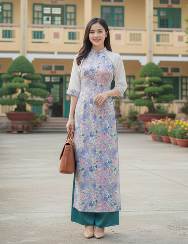 Áo Dài Tay A Viền Hoa AD1317 (áo lẻ) KHUYẾN MÃI - ƯU ĐÃI