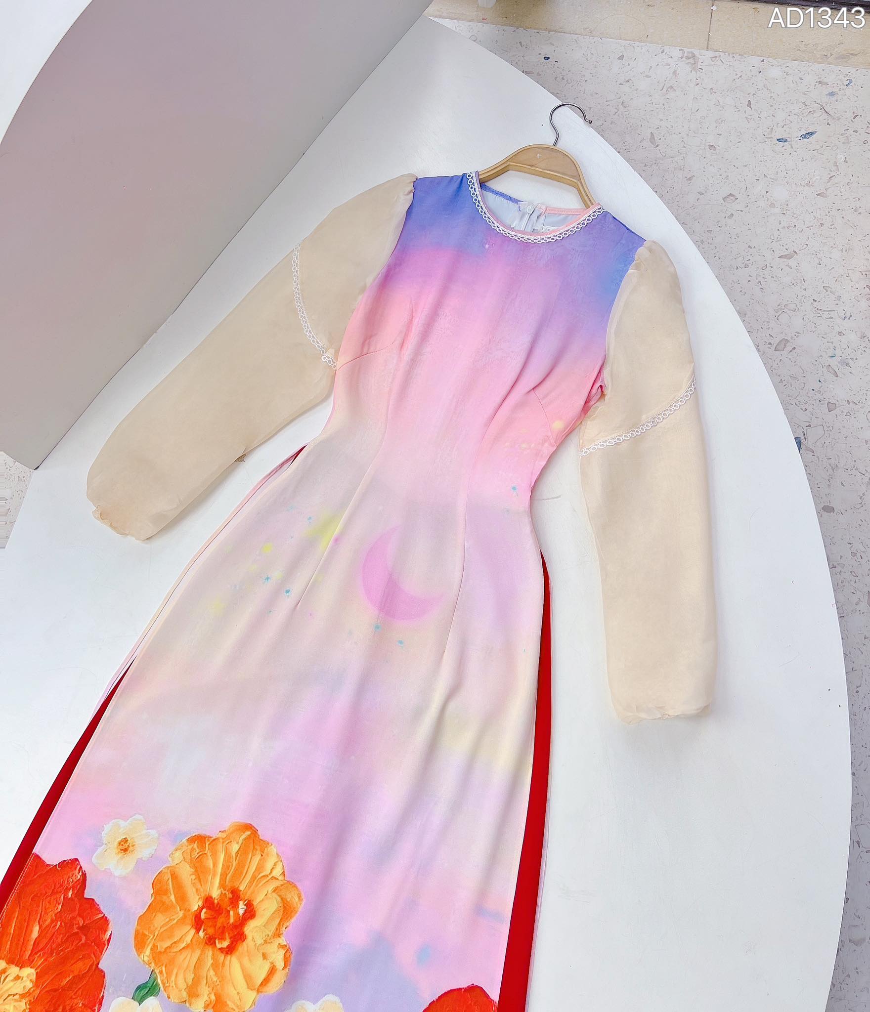Áo Dài Tay Nối Ren Chân Bông AD1343 (áo lẻ)