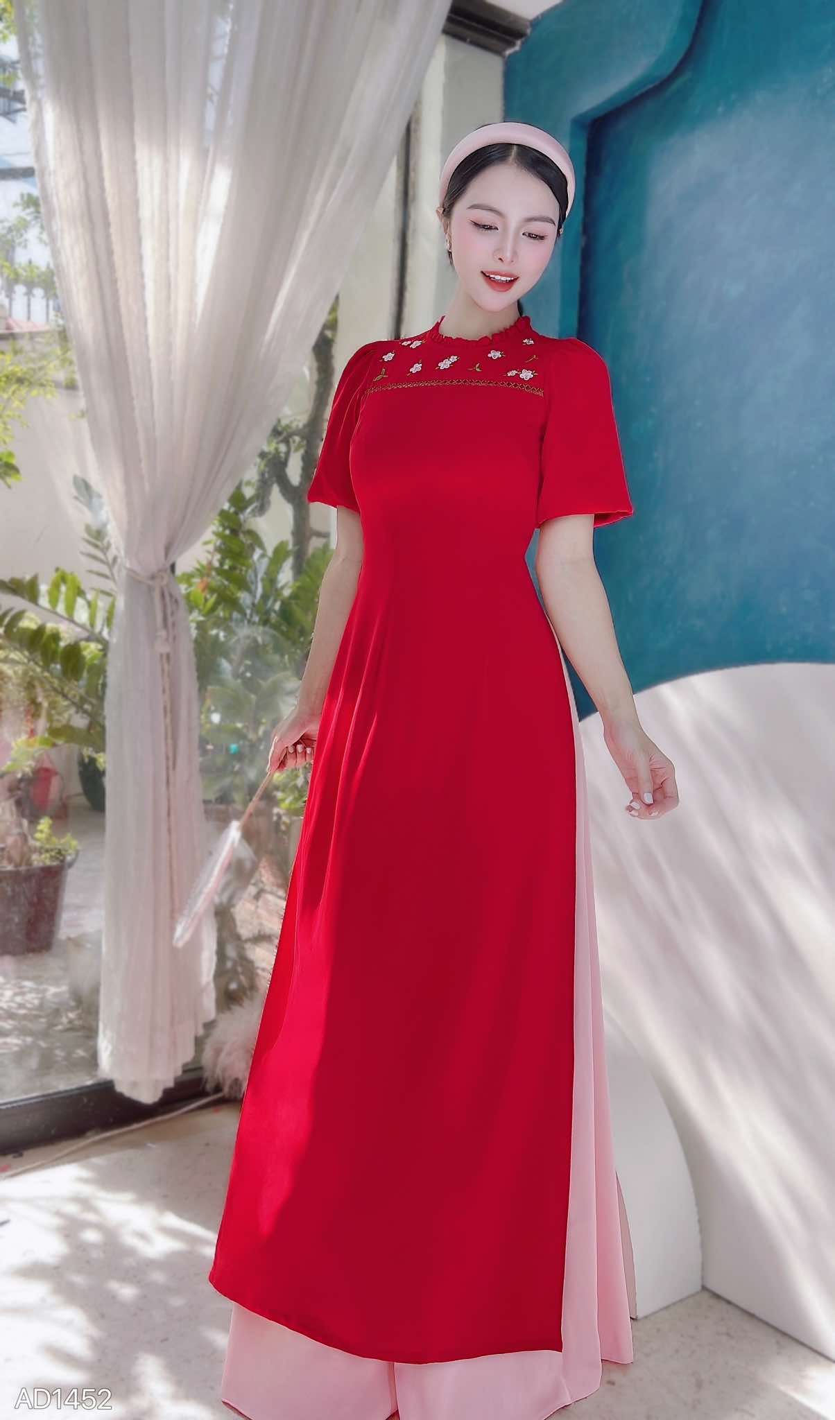 Áo Dài Thêu Nhụy Hồng AD1452 (áo lẻ) KHUYẾN MÃI - ƯU ĐÃI