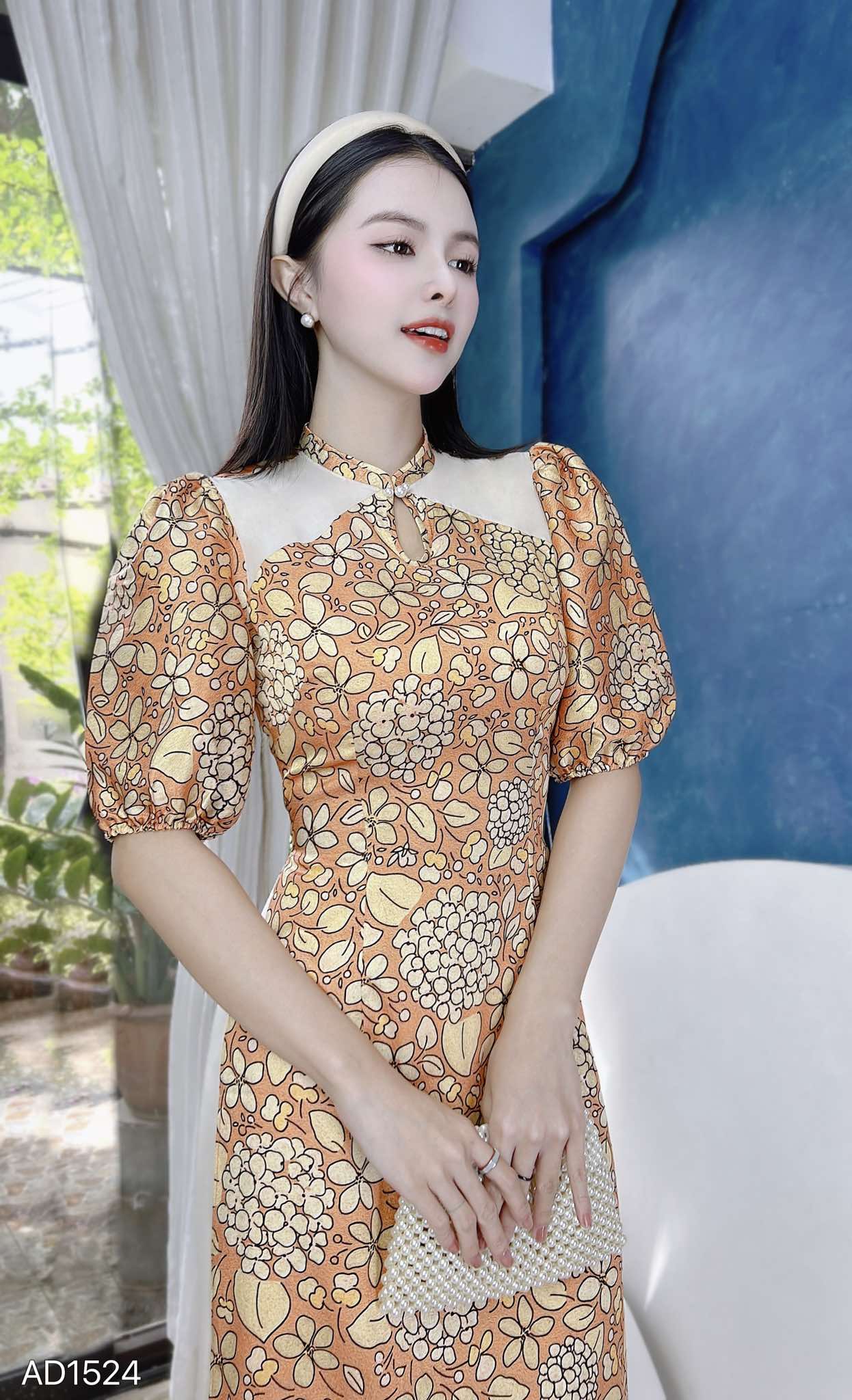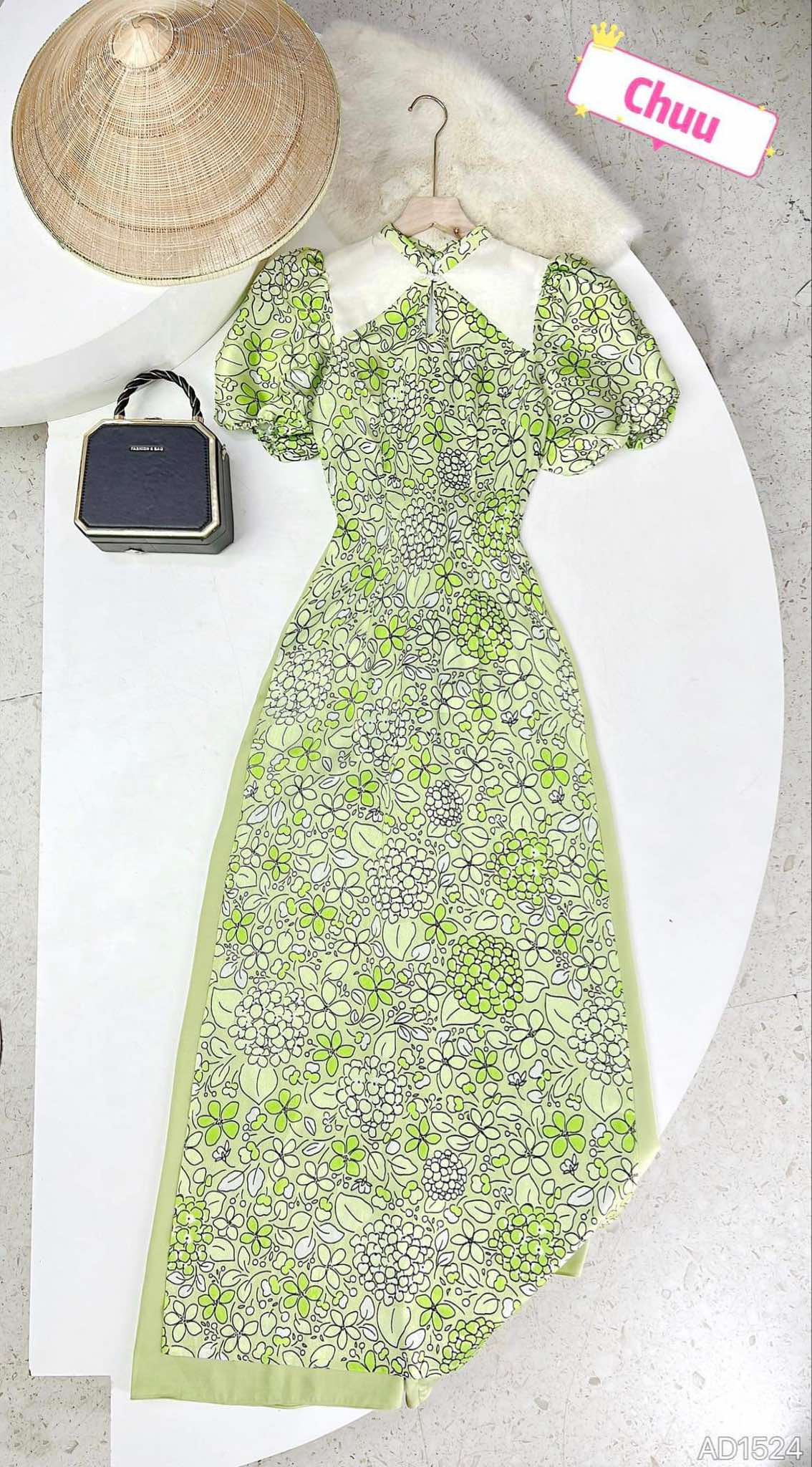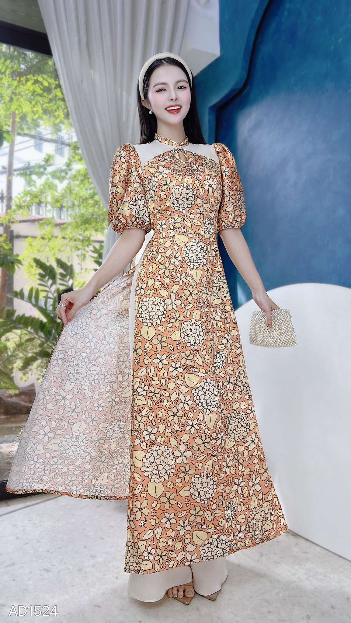 Áo Dài Tú Cầu Giọt Nước AD1524 (áo lẻ) KHUYẾN MÃI - ƯU ĐÃI