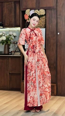 Áo Dài 4 Tà Nụ Hoa Trên Cửa Kèm Phụ Kiện AD9003.3045 (áo lẻ) KHUYẾN MÃI - ƯU ĐÃI