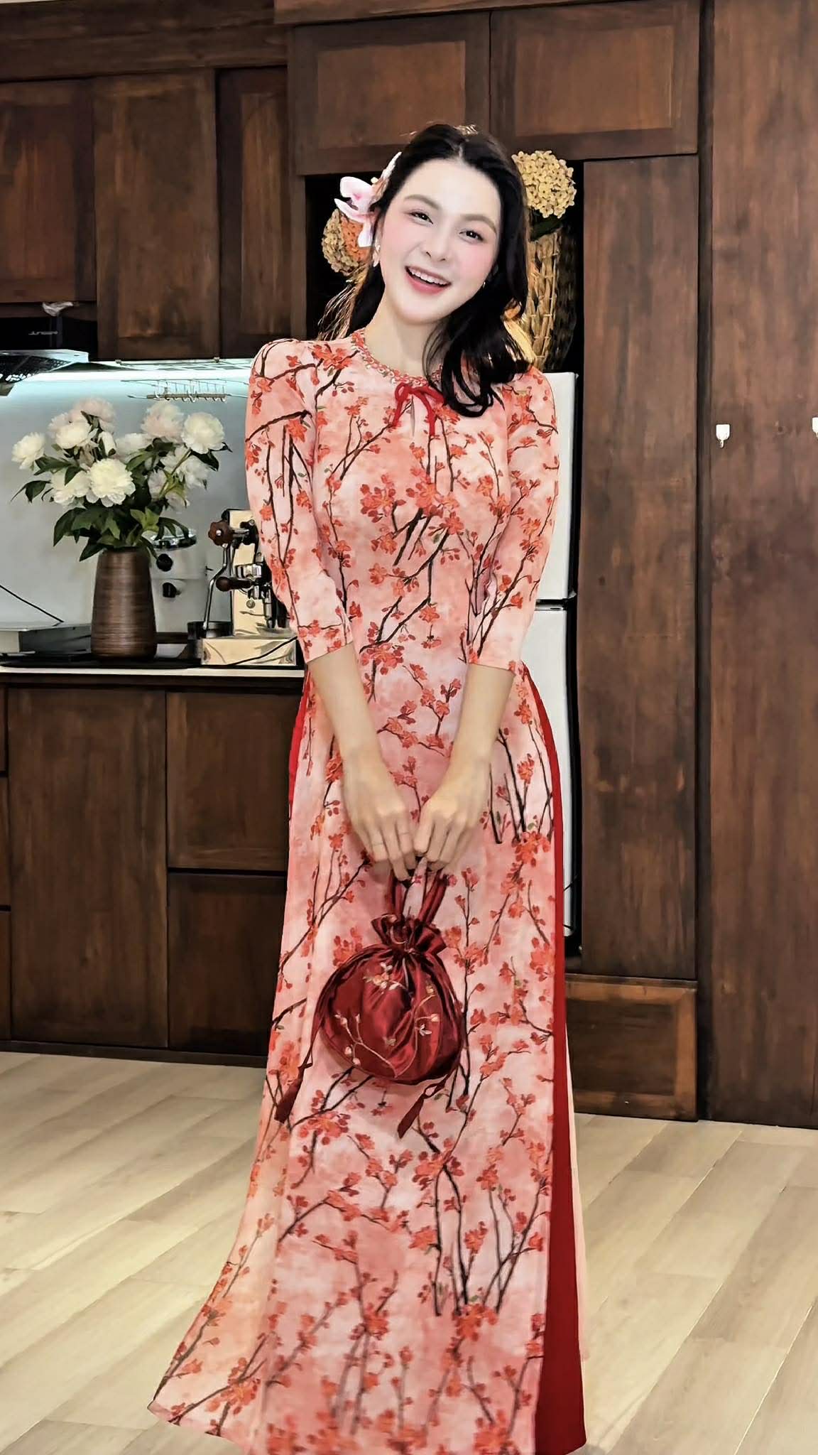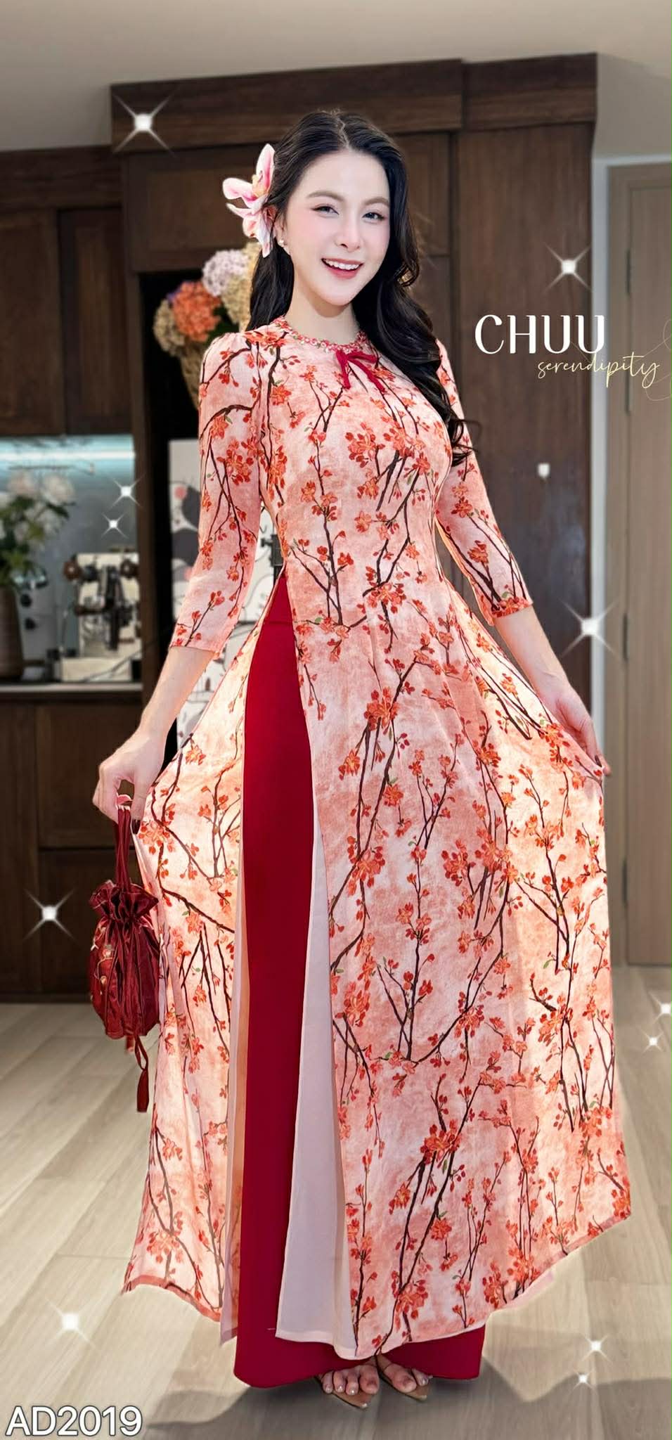 Áo Dài 4 Tà Đóa Hoa Đào Rơi AD2019 (áo lẻ) KHUYẾN MÃI - ƯU ĐÃI