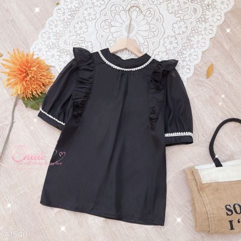 Áo Sơ Mi Nơ Vai Bèo Viền Ngọc A1540