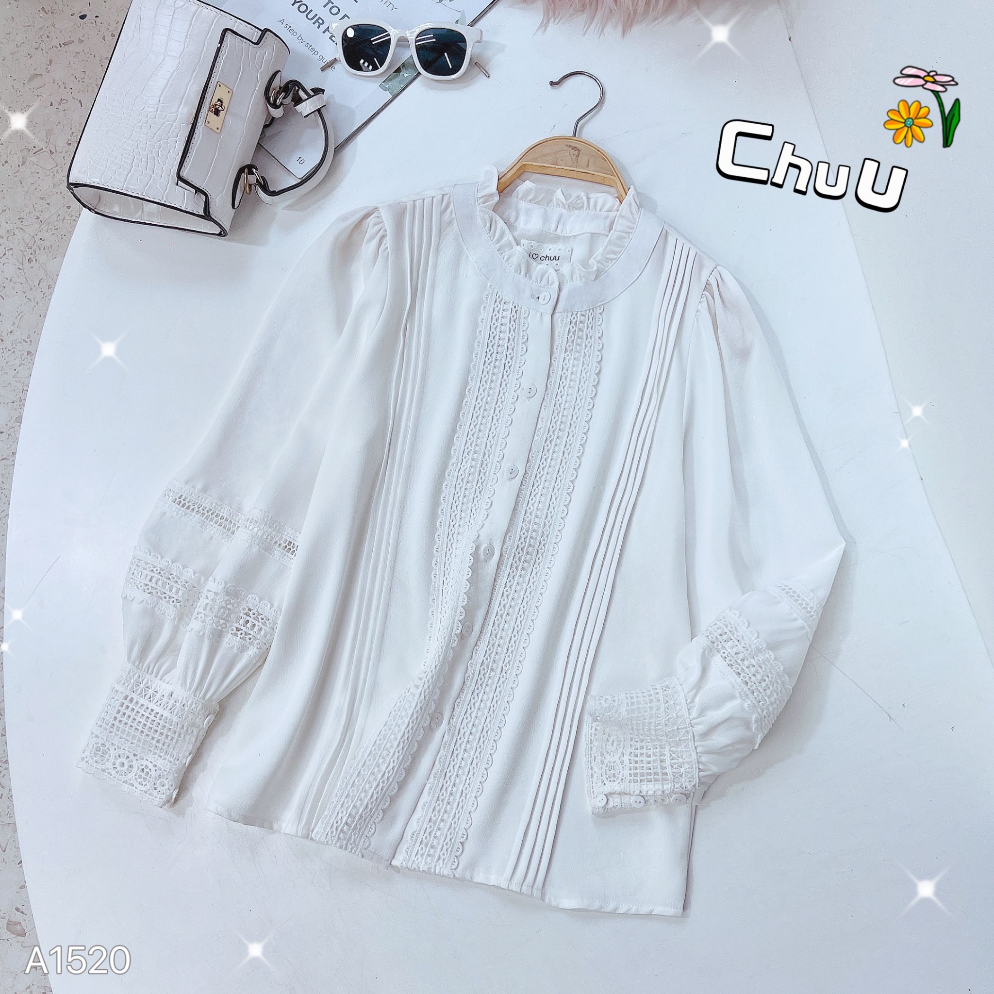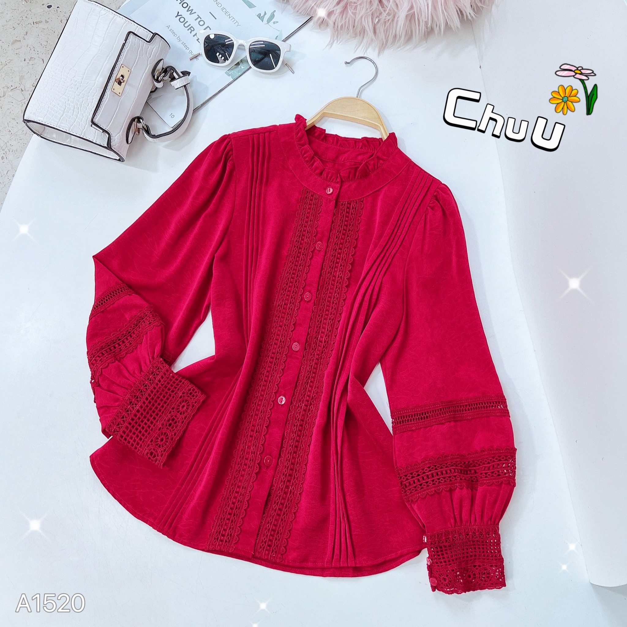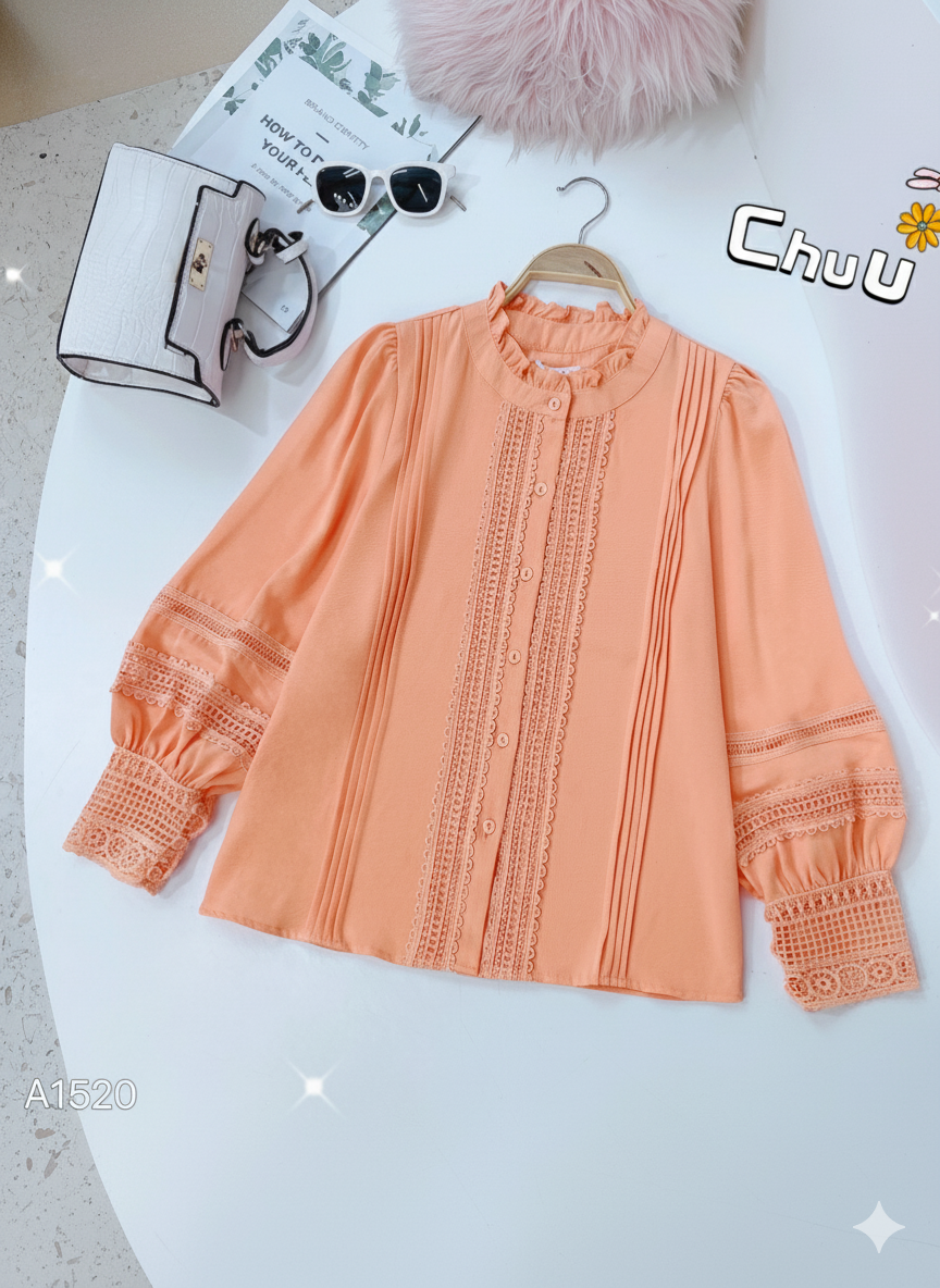 Áo Sơ Mi Tằm Gãy Ren Queen A1520 KHUYẾN MÃI - ƯU ĐÃI