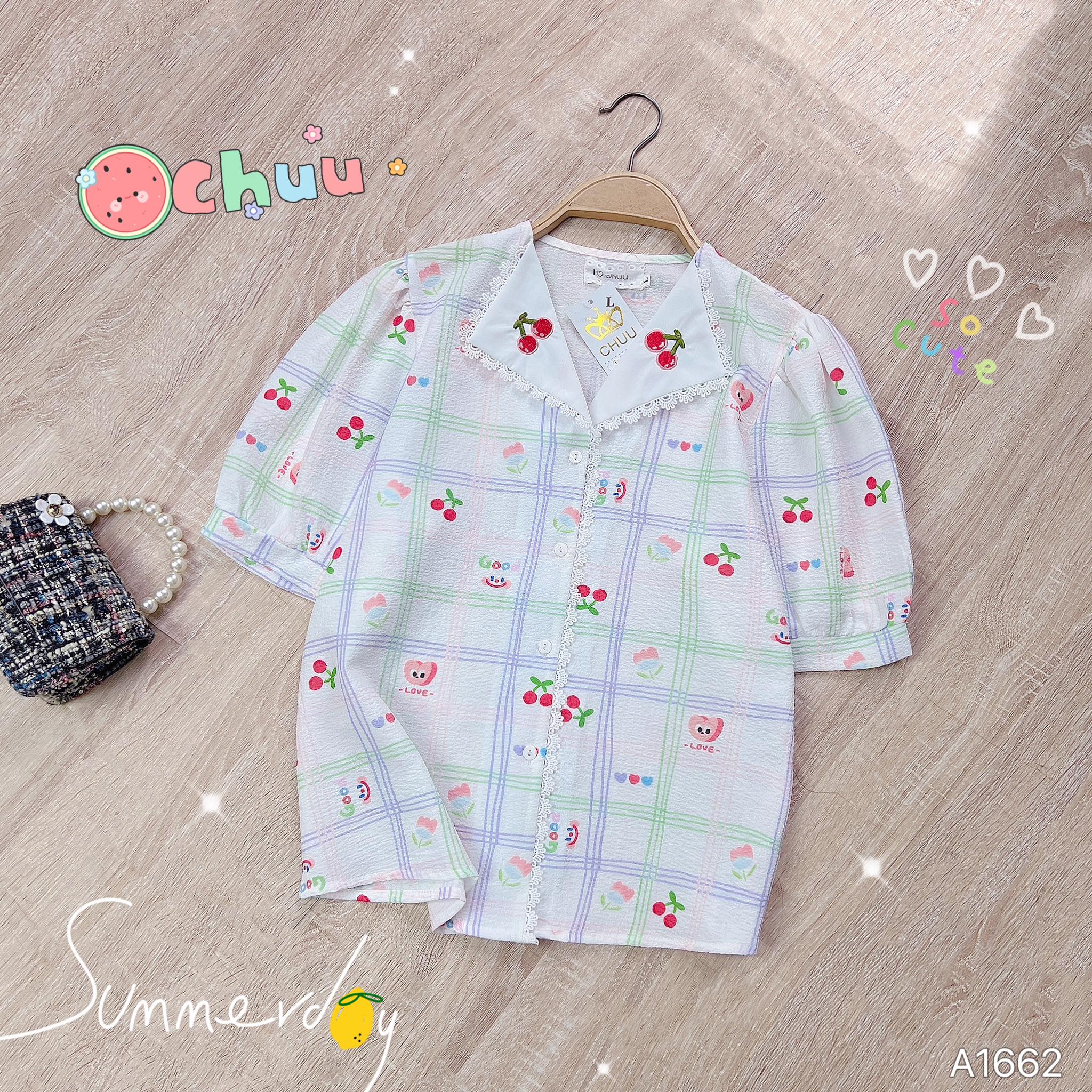 Áo Sơ Mi Xốp Cổ Lật Thêu A1662