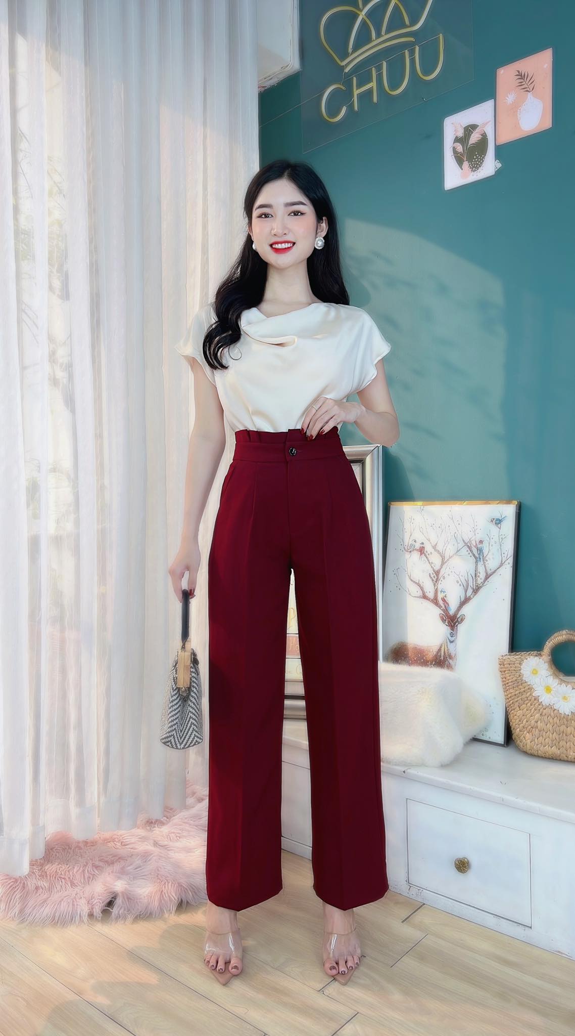 - Dễ phối quần tây ống suông với áo sơ mi, áo vest công sở